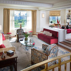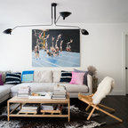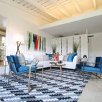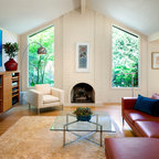 Foto de sala de estar cerrada, retro, de tamaño medio, sin televisor, con paredes blancas y suelo de mármol — Houzz