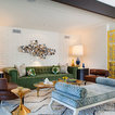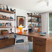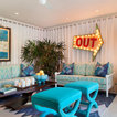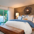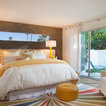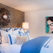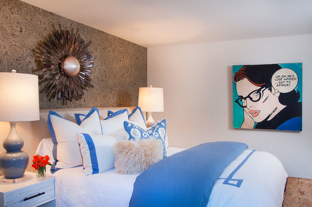 A splash of cornflower blue in a modern bedroom with a touch of whimsical