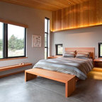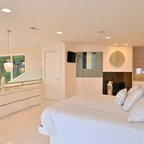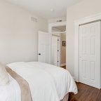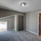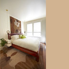 Imagen de habitación de invitados minimalista, de tamaño medio, con paredes multicolor y moqueta — Houzz
