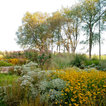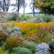notice the simplicity of the plantings. One grass, one purple perennial and one yellow. The tree is mmmmm blah