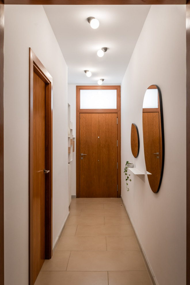 La entrada y el espacio de la escalera ¡Ay! Lugares de paso en los que te quieres quedar, aquí sobre todo hemos jugado con la iluminación, mobiliario muy minimalista y algunos contrastes.