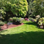 Imagen de jardín francés, clásico, grande, en verano, en patio trasero, con huerto, exposición total al sol y mantillo — Houzz
