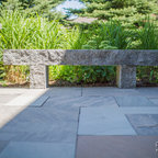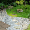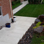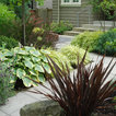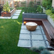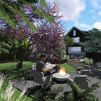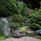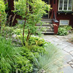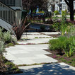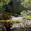A landscape to keep the whole family busy. Features include a built-in ipe bench with concrete feature planter, ipe raised vegetable bed and espaliered fruit trees, kids play zone with chalkboard wall complete with holes for rock climbing holds and a rustic entrance garden.