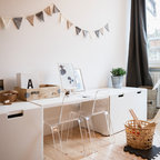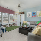 Imagen de dormitorio infantil clásico renovado, grande, con paredes rosas y suelo gris — Houzz