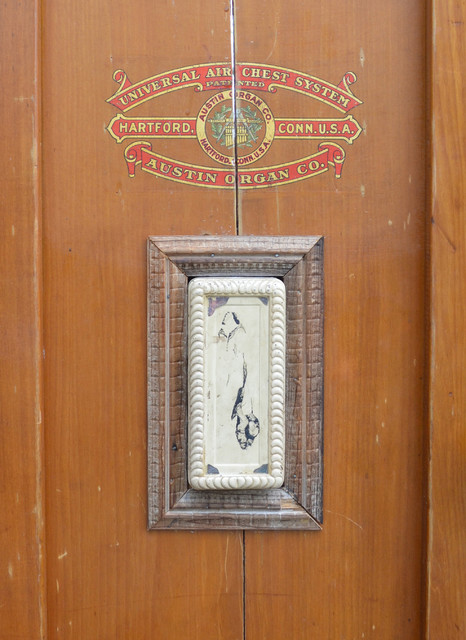 The interior side of the door still shows the brand and manufacturer label as well as the access box.