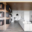 Techo de madera y librerías en las paredes