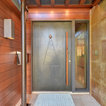 The art piece and the floor rock to tile treatment