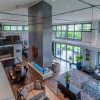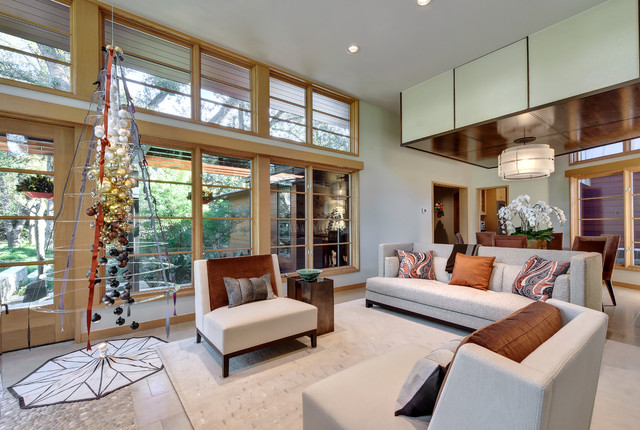 Modelo de salón para visitas abierto actual — Houzz