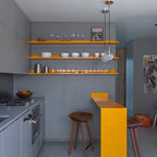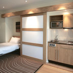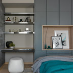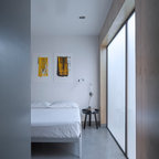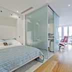 Venice Micro Apartment Contemporary Bedroom, Los Angeles Art Gray