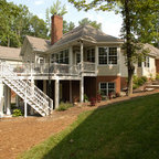 Second story sticks out further than third and color have flowers or French doors out of the front addtion