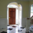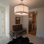 The walnut door opens to an entry, living area and kitchen. The ceiling shows where walls once cut off the entry from the rest of the spaces. Glaister removed the walls to create better flow. Brick adds warmth and texture around antique-style lighting and furnishings. “I wanted an old-world look,” Cindy says.Glaister consciously chose lighting that doesn’t have a lot of glass so dust from the surrounding almond orchards doesn’t settle and get trapped. The entry chandelier features chickenwire. “Anyone who lives in the country knows that glass is not your friend,” Glaister says. She and Cindy worked with The Gallery Finesse in nearby Turlock to furnish the home with new artwork. The paintings are mostly by Belgian artists and depict farm scenes. “I just loved them because they’re peaceful and farm-related,” Cindy says. “I can sit and look at them all day. They’re so soothing and remind me of the small farm I grew up on.” All the artwork features custom lighting as well. “It changes the space dramatically,” Cindy says. Find a designer in your area