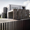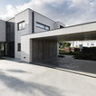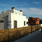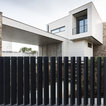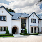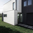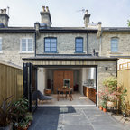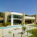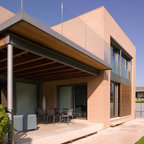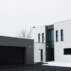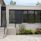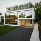 Ejemplo de fachada contemporánea, de tamaño medio, de dos plantas, con tejado plano — Houzz