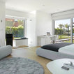 Lindo contraste del piso con muebles blancos