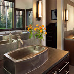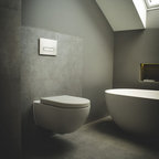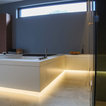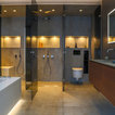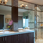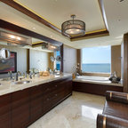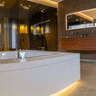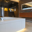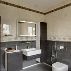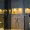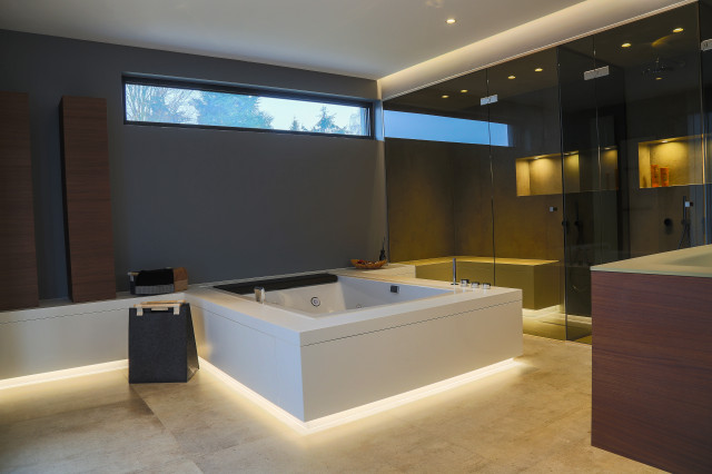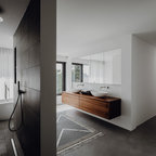 Großzügiges, offenes Wellnessbad mit Doppelwaschbecken von Falper und einem Hamam von Effe. Planung, Design und Lieferung durch acqua design - exklusive badkonzepte