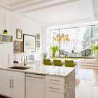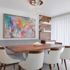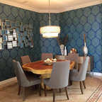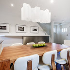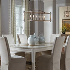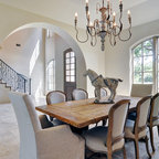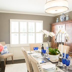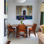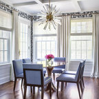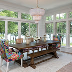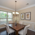 Modelo de comedor clásico renovado con paredes blancas y suelo de madera oscura — Houzz