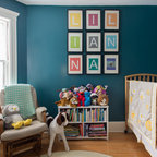 Ejemplo de habitación de bebé neutra tradicional renovada, de tamaño medio, con paredes beige y moqueta — Houzz