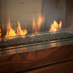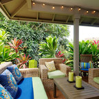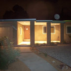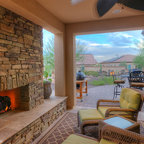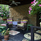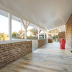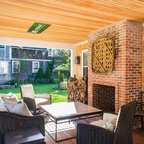 Foto de porche cerrado actual, de tamaño medio, en patio trasero y anexo de casas, con entablado — Houzz