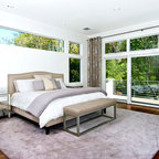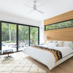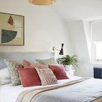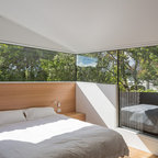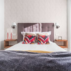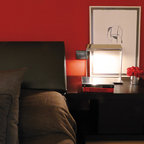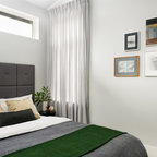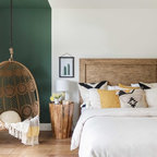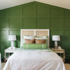 Diseño de dormitorio principal, contemporáneo, pequeño, con paredes verdes y suelo de madera oscura — Houzz