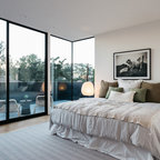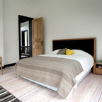 Diseño de habitación de invitados actual, pequeña, con paredes verdes y suelo de madera oscura — Houzz