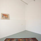 Foto de habitación de invitados actual, pequeña, con paredes verdes y suelo de madera oscura — Houzz