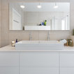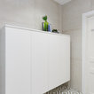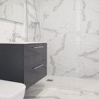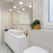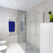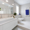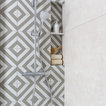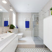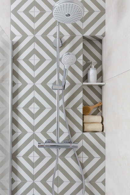 Gran baño minimalista con baldosas hidráulicas de formas geométricas