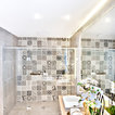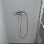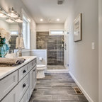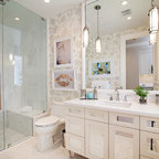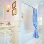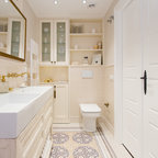 Baño de estilo muy clásico que cuenta con bañera y ducha