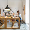 De un vistazoQuién vive aquí: Joana, artista, y su marido Oriol, abogadoSuperficie: 200 metros cuadradosSituación: Eixample, BarcelonaFotografía: Jordi FolchVídeo: Júlia de Balle Dato curioso: Como en las galerías de arte, Joana coloca un punto rojo en la pared junto a cada obra vendida. El díptico del pulpo de esta imagen, por ejemplo, lo tiene un restaurante en IbizaEl taller, la habitación más luminosa y tranquila de la casa, está pegada al dormitorio principal. Joana pasa aquí su jornada dibujando y promocionando su trabajo en las redes sociales. Las mesas de trabajo de roble se las encargó a unos carpinteros de su confianza.Los flexos naranjas son de Habitat y las lámparas de techo, de Ikea. Aunque originalmente plateadas, Joana las pintó de negro y les cambió el cable por uno de tela.