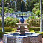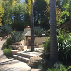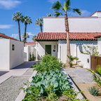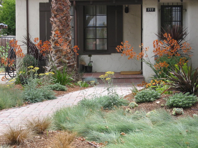 Imagen de jardín mediterráneo, en patio delantero, con exposición total al sol y adoquines de piedra natural — Houzz