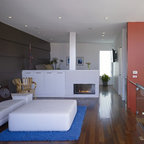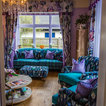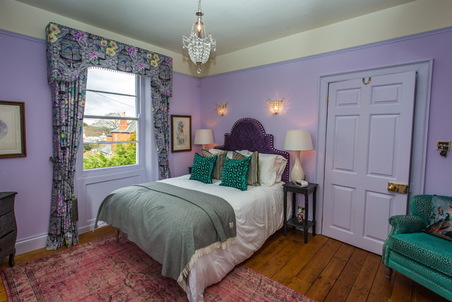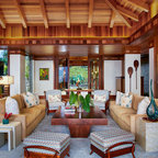 Diseño de salón tropical con paredes púrpuras — Houzz