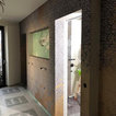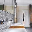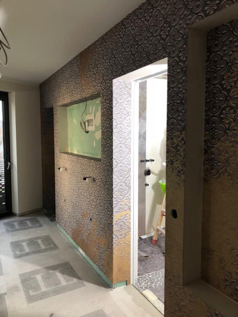 Spachtelboden meets italienische Designtapeten im Masterbad