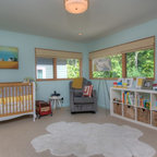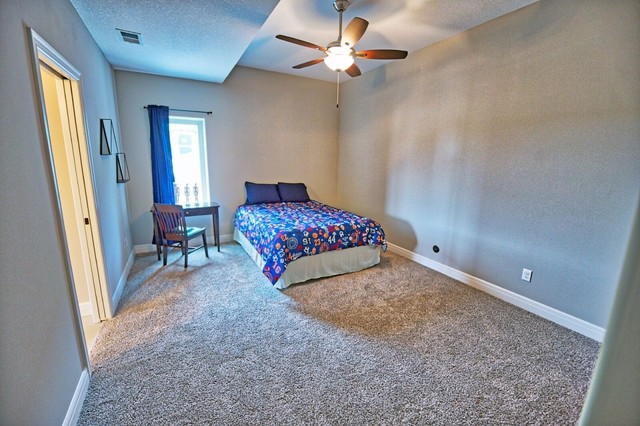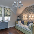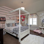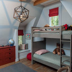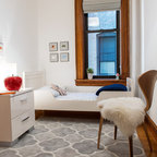 Foto de dormitorio infantil tradicional renovado, de tamaño medio, con paredes grises, moqueta y suelo marrón — Houzz