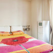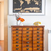 Vemos un nuevo ejemplo de ello en los cojines del sofá, que se combinan unos en una tejido moderno naranja con otro que Valentina encontró en casa de su madre. “Llevaban un tiempo olvidados en un cajón y ella estaba a punto de tirarlos. Por suerte lo impedí y me encanta tenerlos en casa. La tela es un trabajo típico de Cerdeña, donde tengo familia por parte de mi padre”.