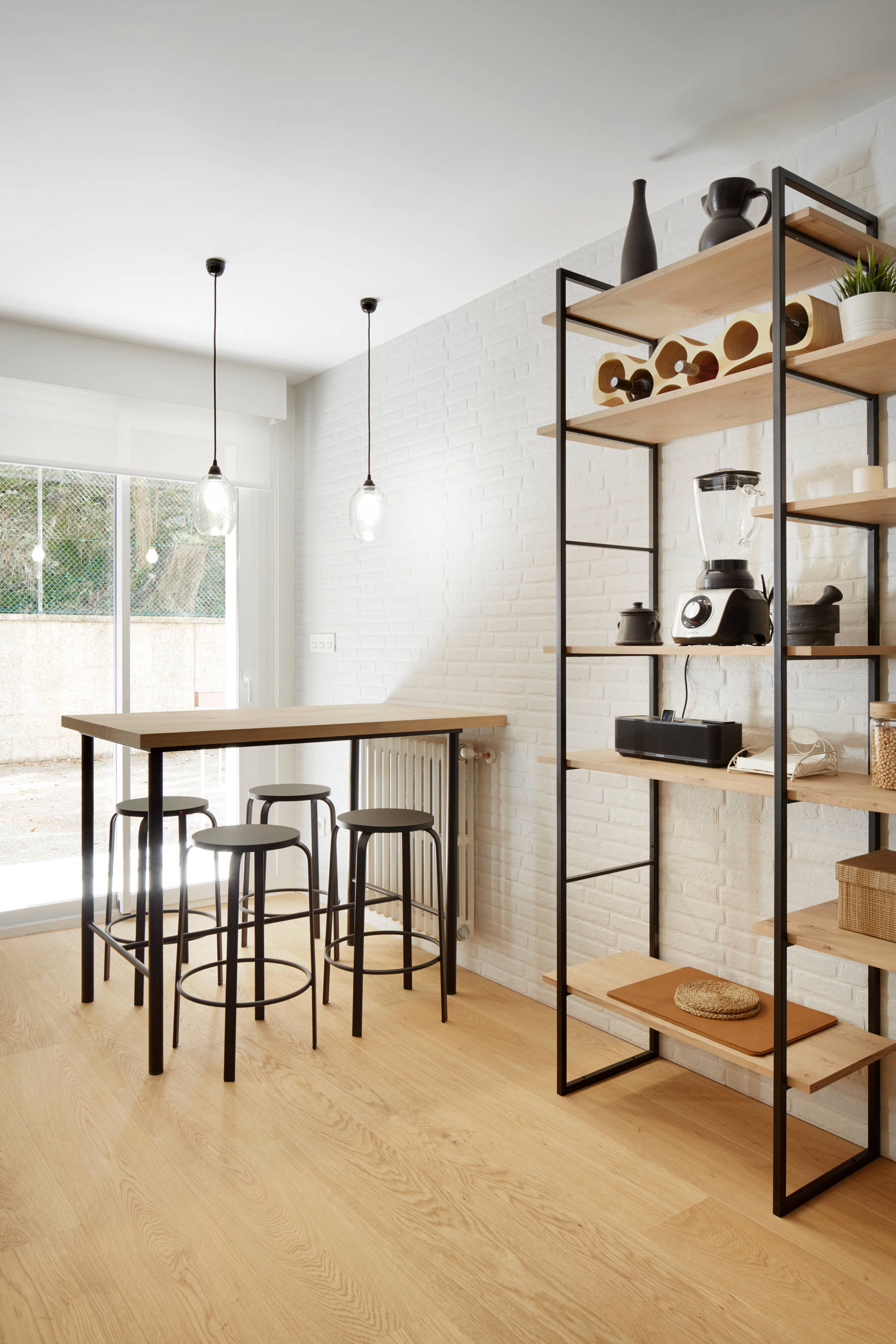 Elige entre barra o mesa con sillas. “En casas pequeñas no recomendamos duplicar mesas: es espacio dedicado a la misma función (sentarse para comer) y, por lo tanto, se necesitan espacios de circulación a su alrededor”, recomiendan desde La Reina Obrera.