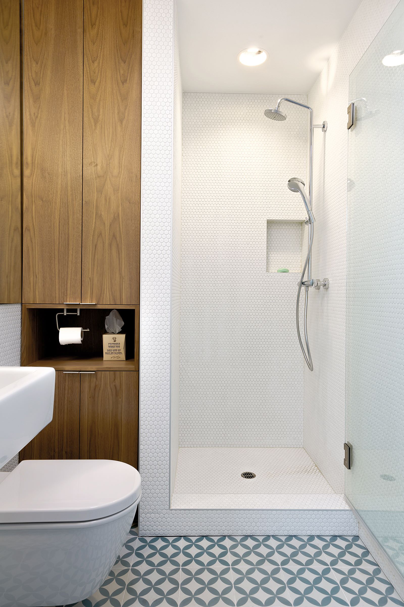 “Alargando la encimera del lavabo se consigue un pequeño almacenamiento extra muy útil en baños pequeños”, propone Fernández.