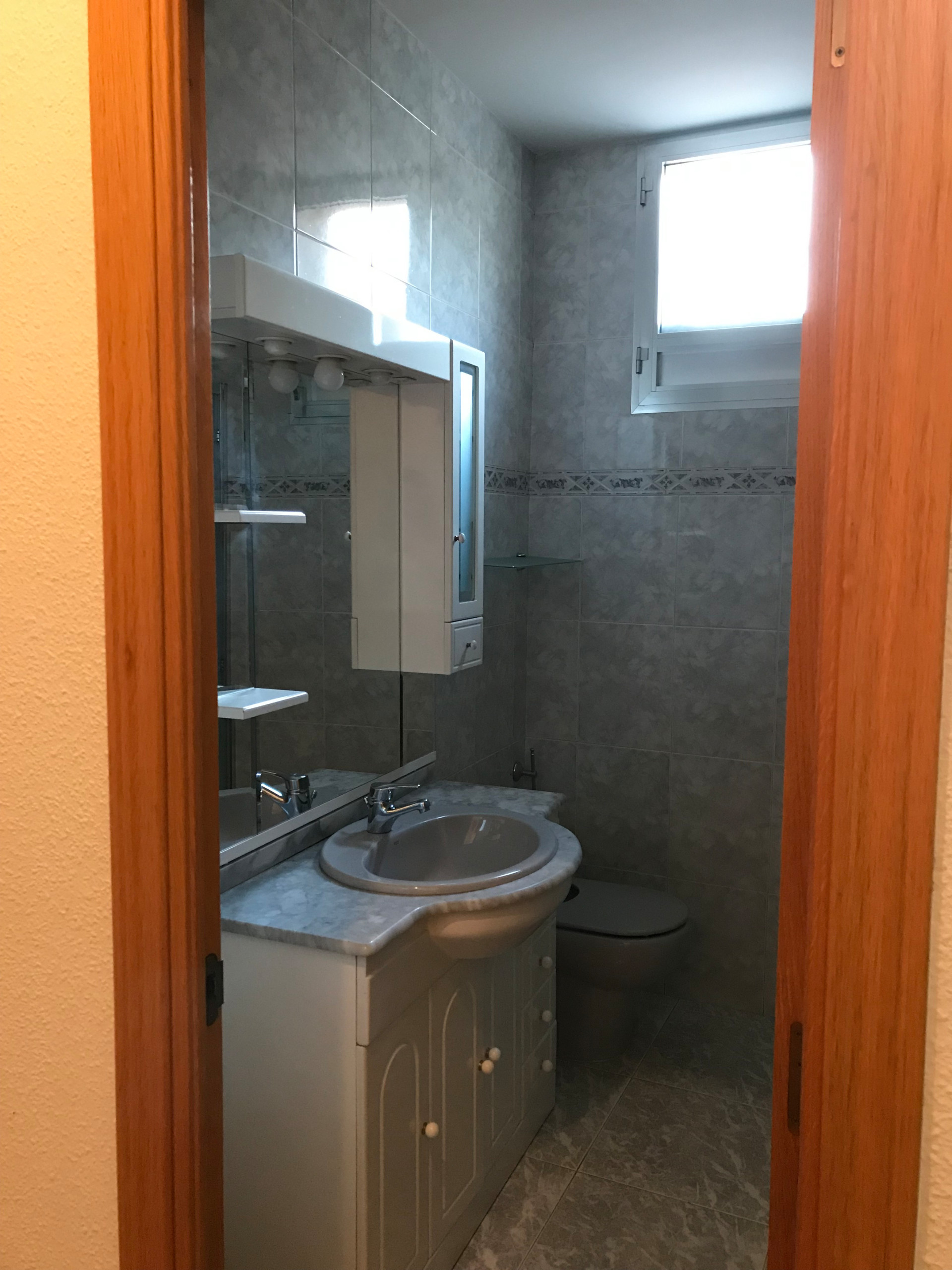 ANTES: En la vivienda original, el espacio que ahora ocupa el salón se distribuía en tres estancias pequeñas. En este baño, por ejemplo, está ahora la nueva cocina. Los dueños explican que cuando compraron el piso había un largo pasillo muy oscuro y la terraza quedaba en un segundo plano.
