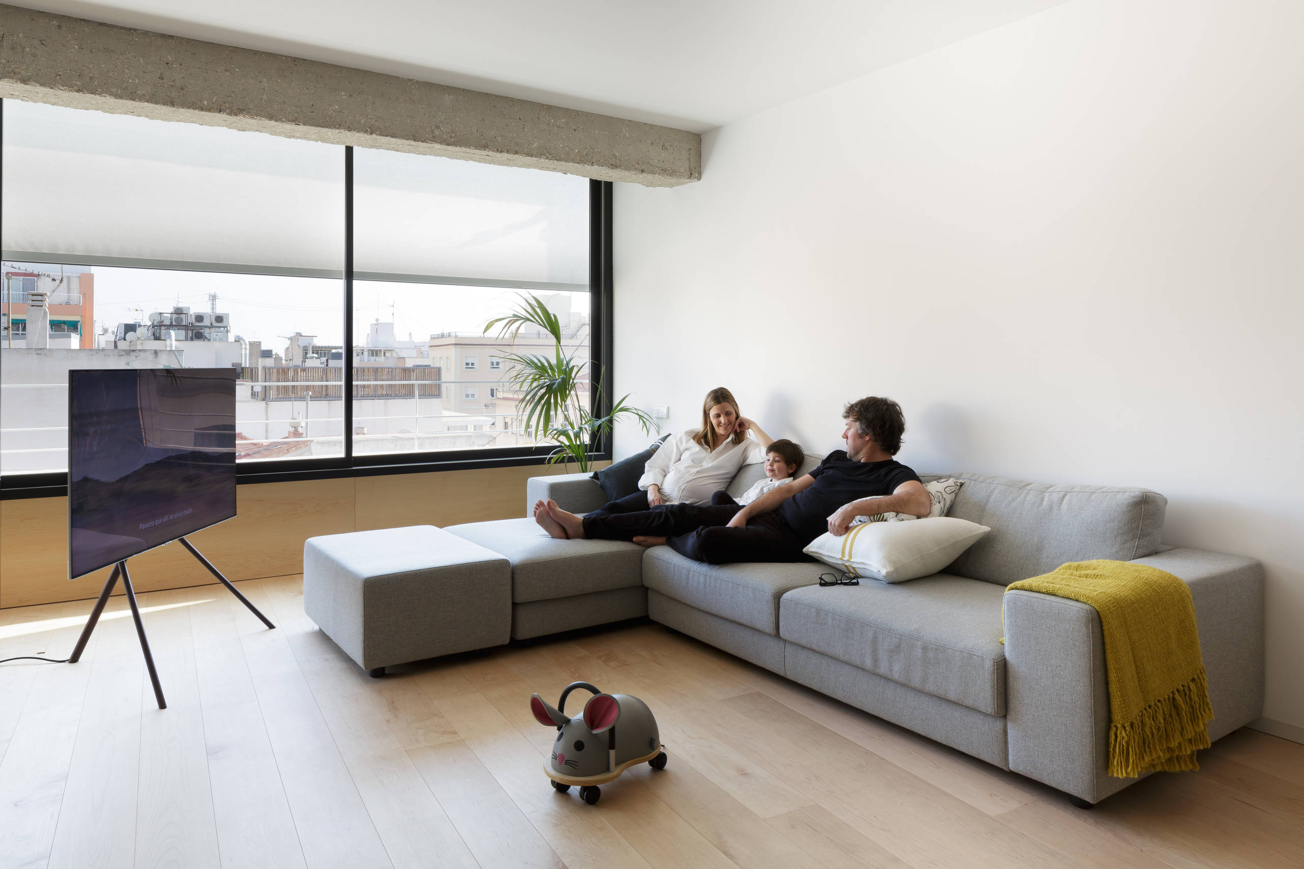 “Toda la zona de día está muy despejada, así Mauro, nuestro hijo, puede corretear y jugar a sus anchas”. Está claro quién es el jefe en el hogar del arquitecto del estudio Volta_.