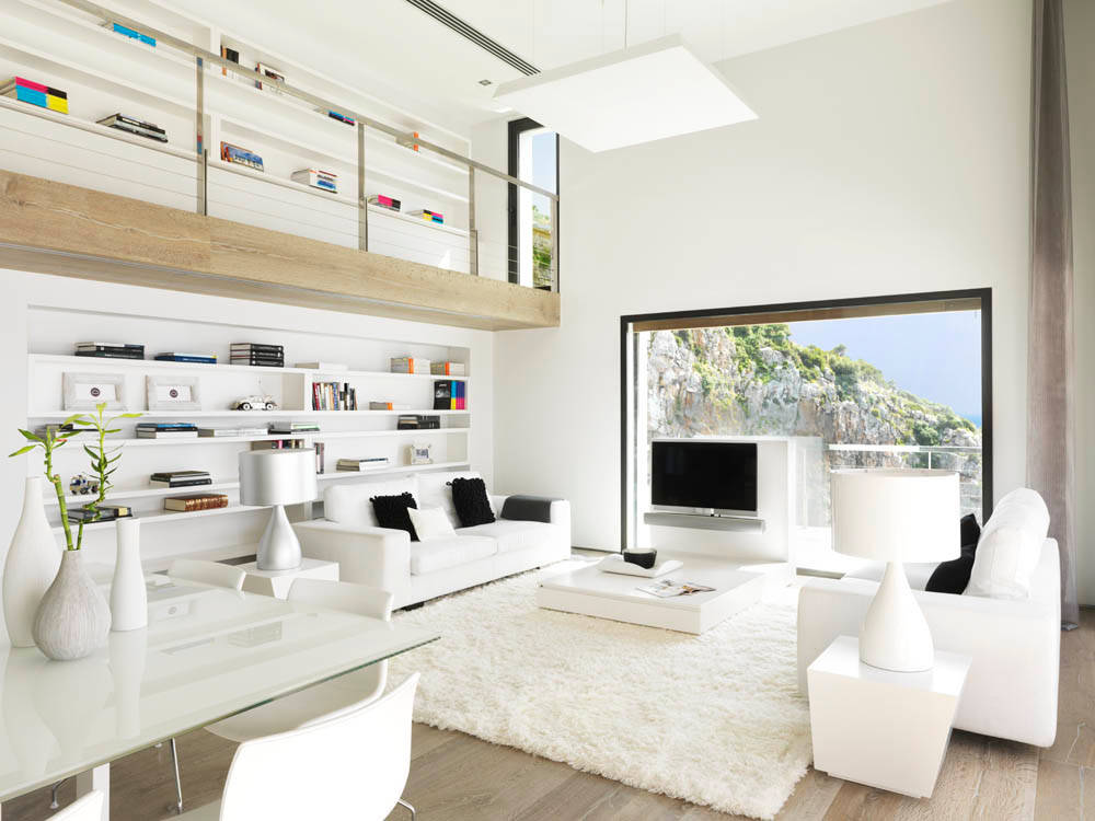 Combina diferentes tonos de blanco –crema, fresco, marfil, mezclado con gris– para las paredes, el mobiliario, tapizados y alfombras. ¿Objetivo? Potenciar la sensación de amplitud.