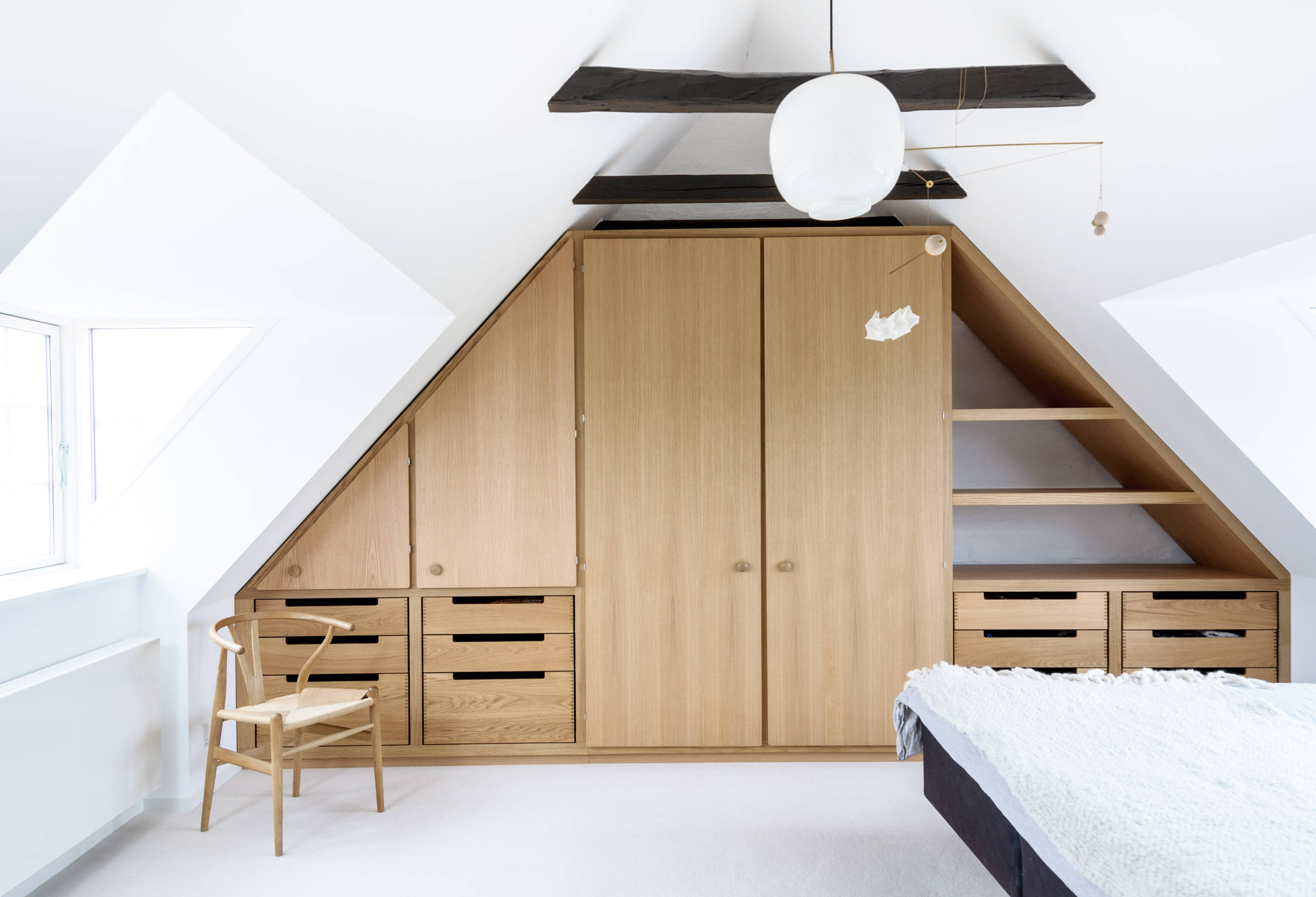 ¿Dónde ubico los armarios? Si lo quieres empotrado, lo ideal es aprovechar rincones irregulares, techos inclinados, huecos debajo de escaleras, espacios residuales, etc. Prepara dentro de la distribución módulos de obra para terminar el frente y montar el interior libremente.