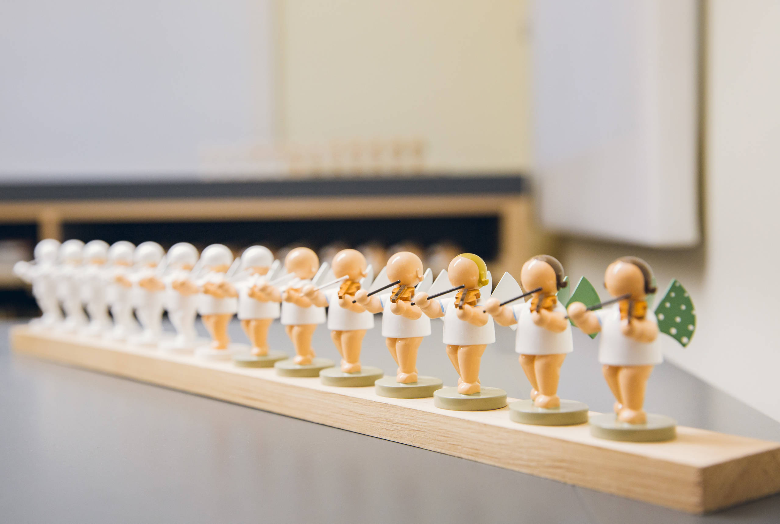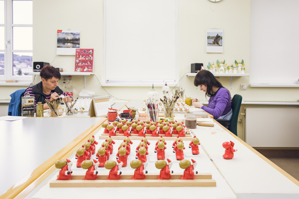 “La pieza estrella de nuestra empresa son los ángeles, con sus características alas de puntos”, dice Lorenz. Precisamente, el tono verde de las alas es uno de los secretos mejor guardados de la fábrica. “Nuestros angelitos regordetes tienen todos el mismo color verde en sus alas y estamos muy orgullosos de ello”, continúa, riendo, Lorenz.
