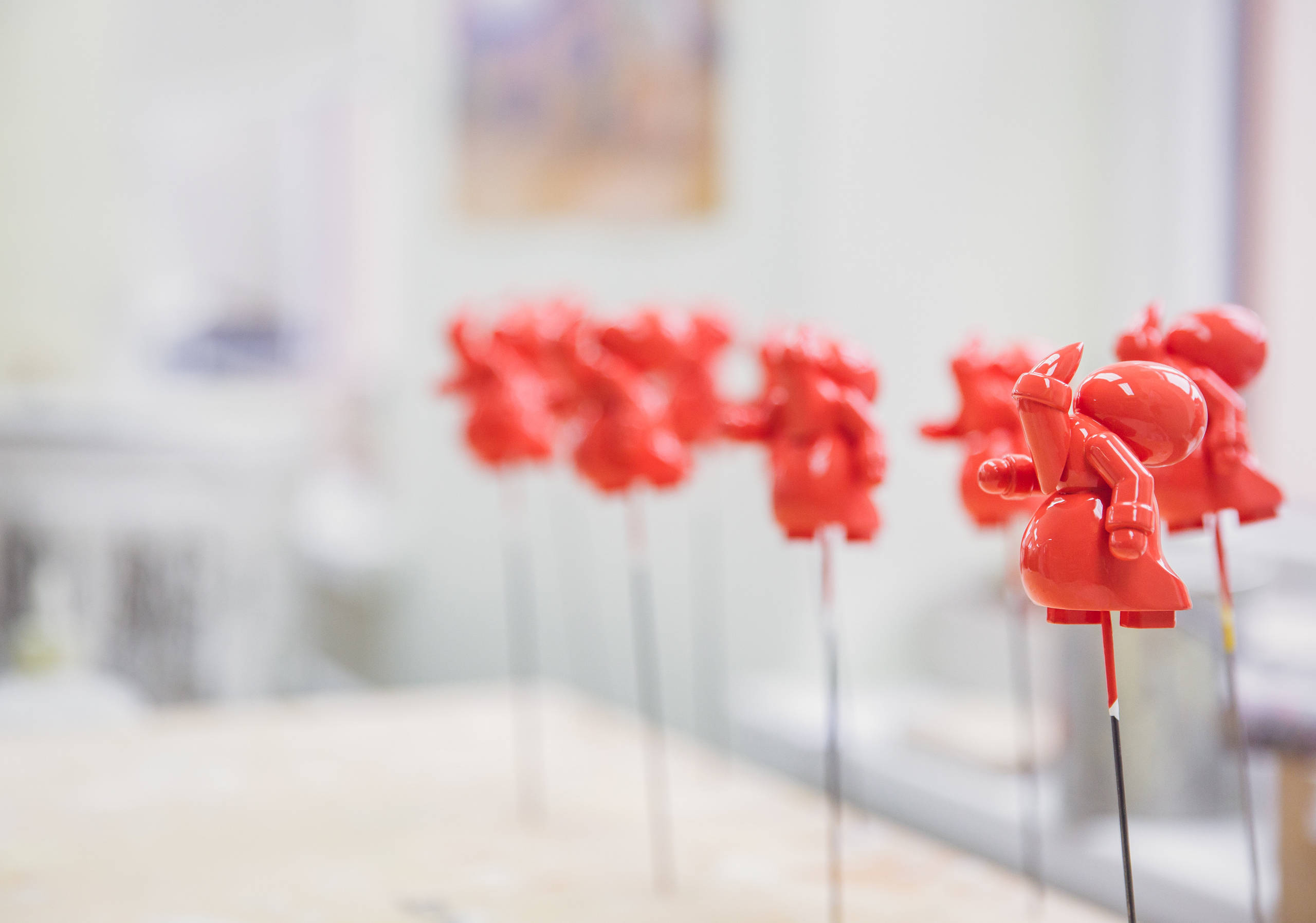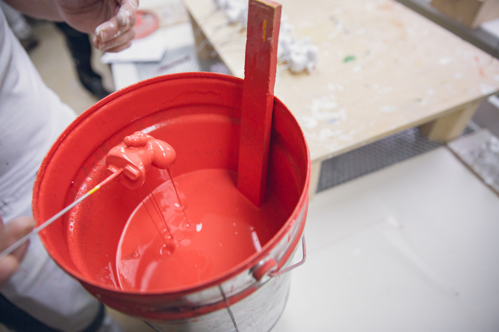 Tras varios días, las figuras pasan a pintarse. Primero reciben una capa de pintura base. “Esto hace que luego sea más fácil aplicar el color y el brillo. Para mantener un color y brillo uniformes, las insertamos en unas agujas y las sumergimos en la pintura dando vueltas. Así conseguimos que no haya excesos de pintura y que el secado sea perfecto”, sigue la responsable de marketing.