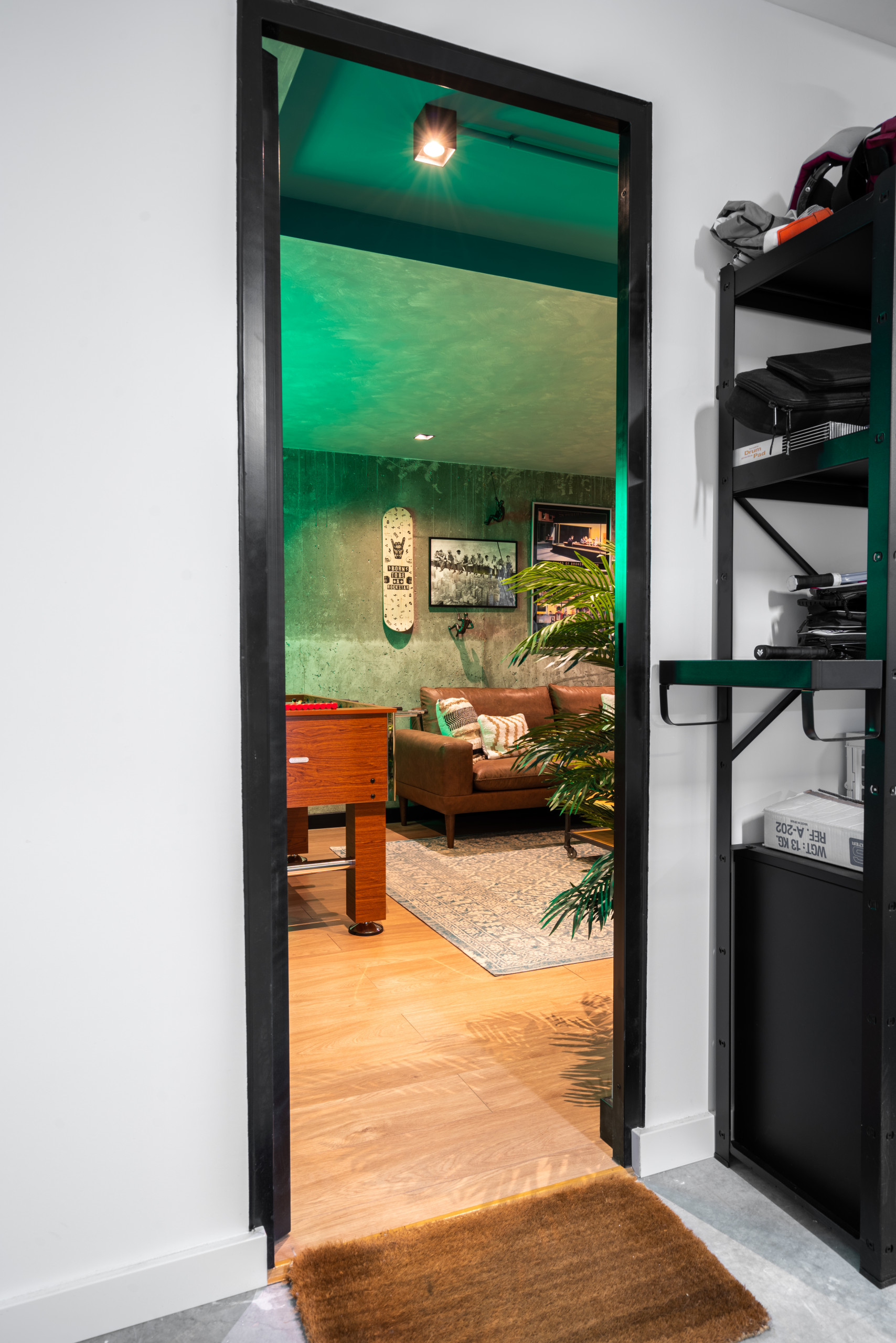 Los propietarios querían una Man Cave –un concepto muy americano– donde evadirse. “Al dueño le gusta tocar la guitarra y quería un rincón para poder hacerlo. Además, tienen tres niños pequeños y me pidieron que fuera un espacio seguro para ellos. Y, claro, también debía ser un lugar donde poder estar todos juntos, o donde los niños disfrutaran con sus amigos”, cuenta Carolina Sánchez, de Comodoos Interiores.