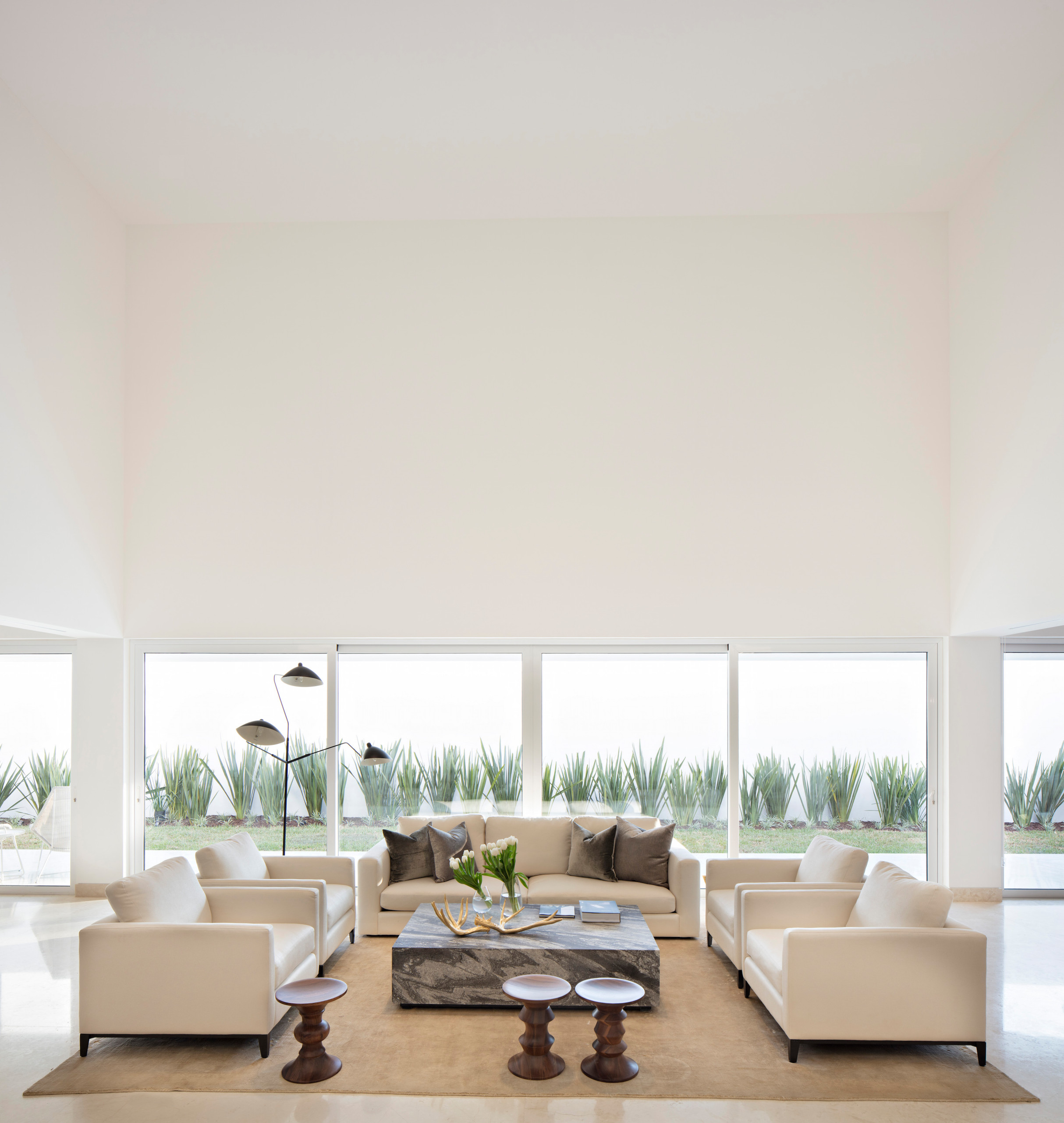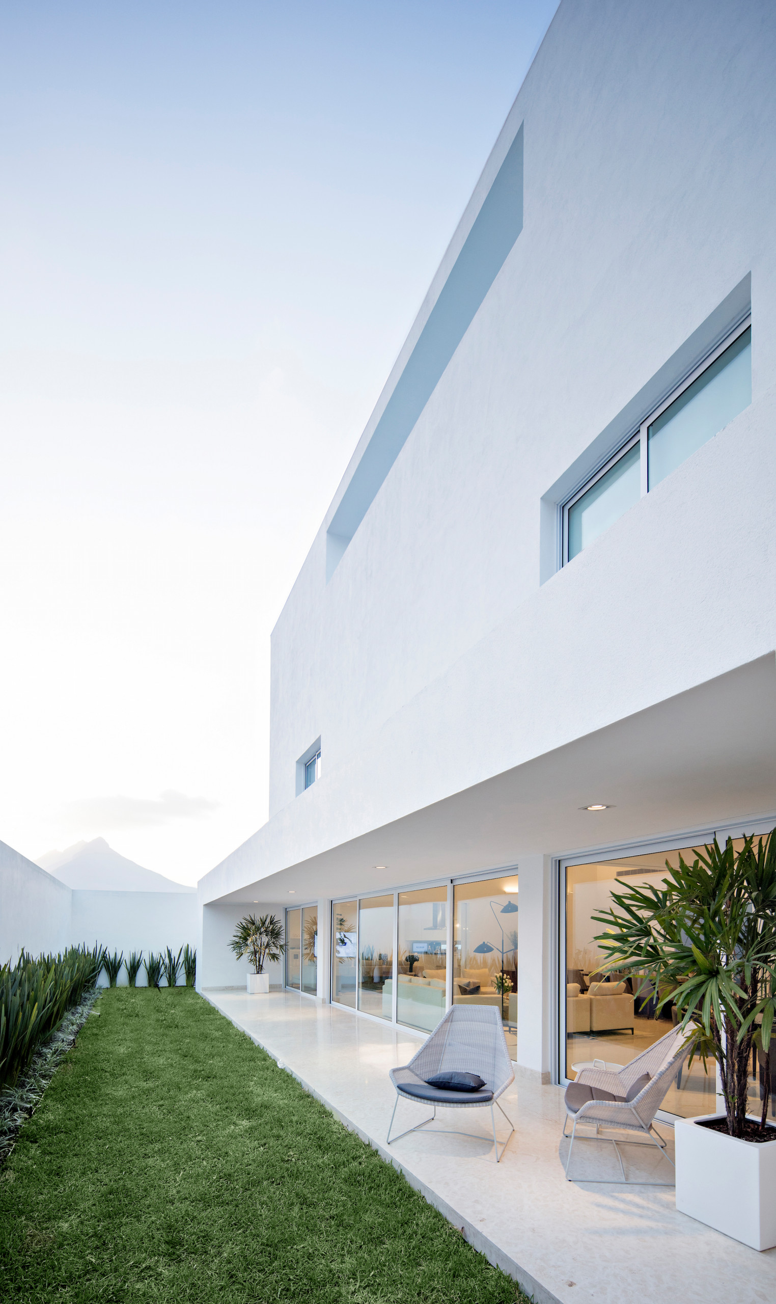 Como se puede apreciar, la arquitectura de la vivienda transmite una gran serenidad. Se encuentra situada en una de las zonas más privilegiadas de Monterrey, con una vista envidiable hacia la Sierra Madre Oriental. Se trata de una casa que es un contundente homenaje al arquitecto mexicano Luis Barragán, uno de cuyos recursos constructivos recurrentes era recoger la luz natural en distintos momentos del día.