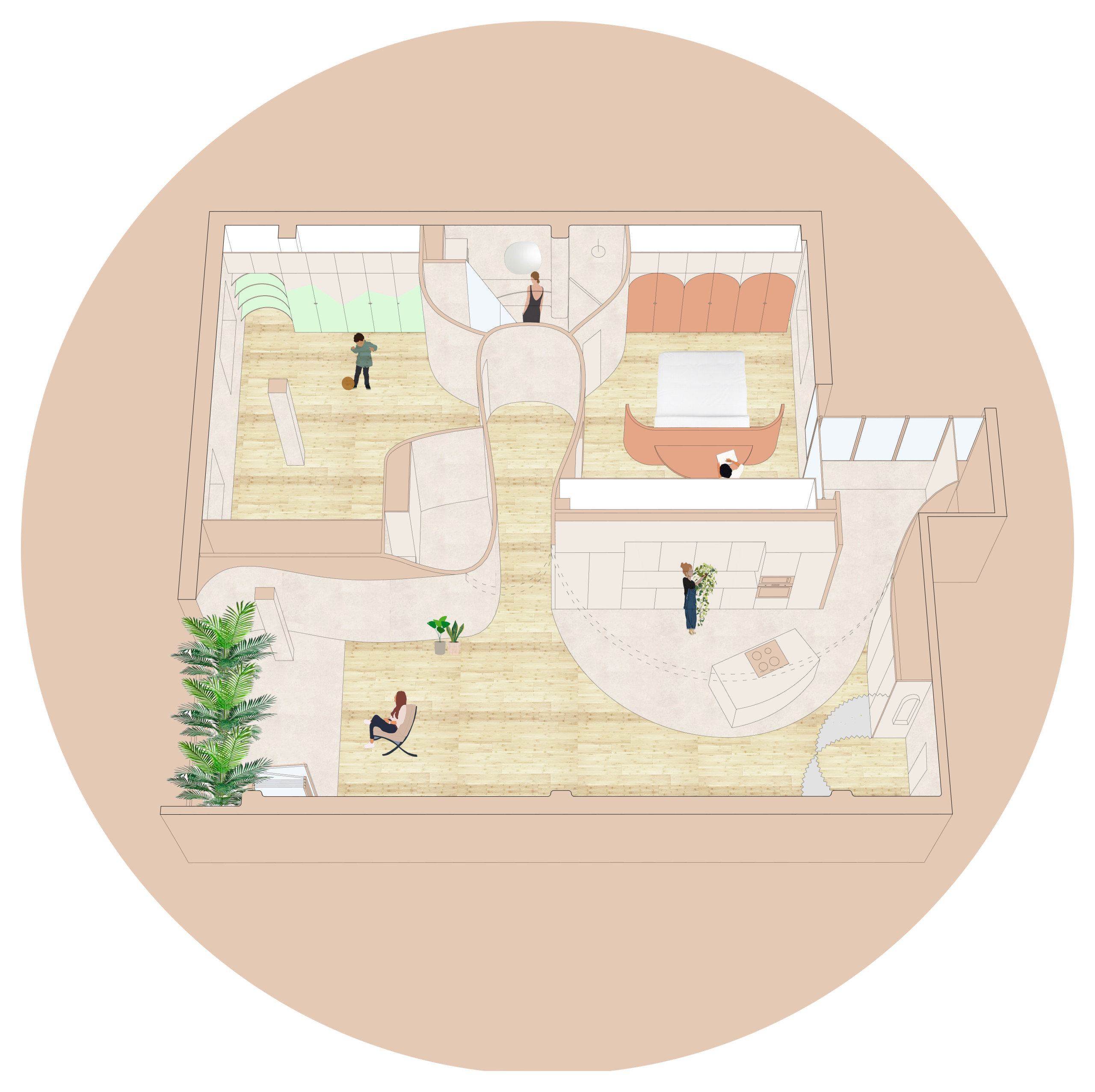 Durante el confinamiento todos hemos tenido que reinventar los espacios para acoger en nuestras casas actividades que antes hacíamos fuera de ella. Esta experiencia ha sido decisiva a la hora de diseñar esta nueva vivienda.