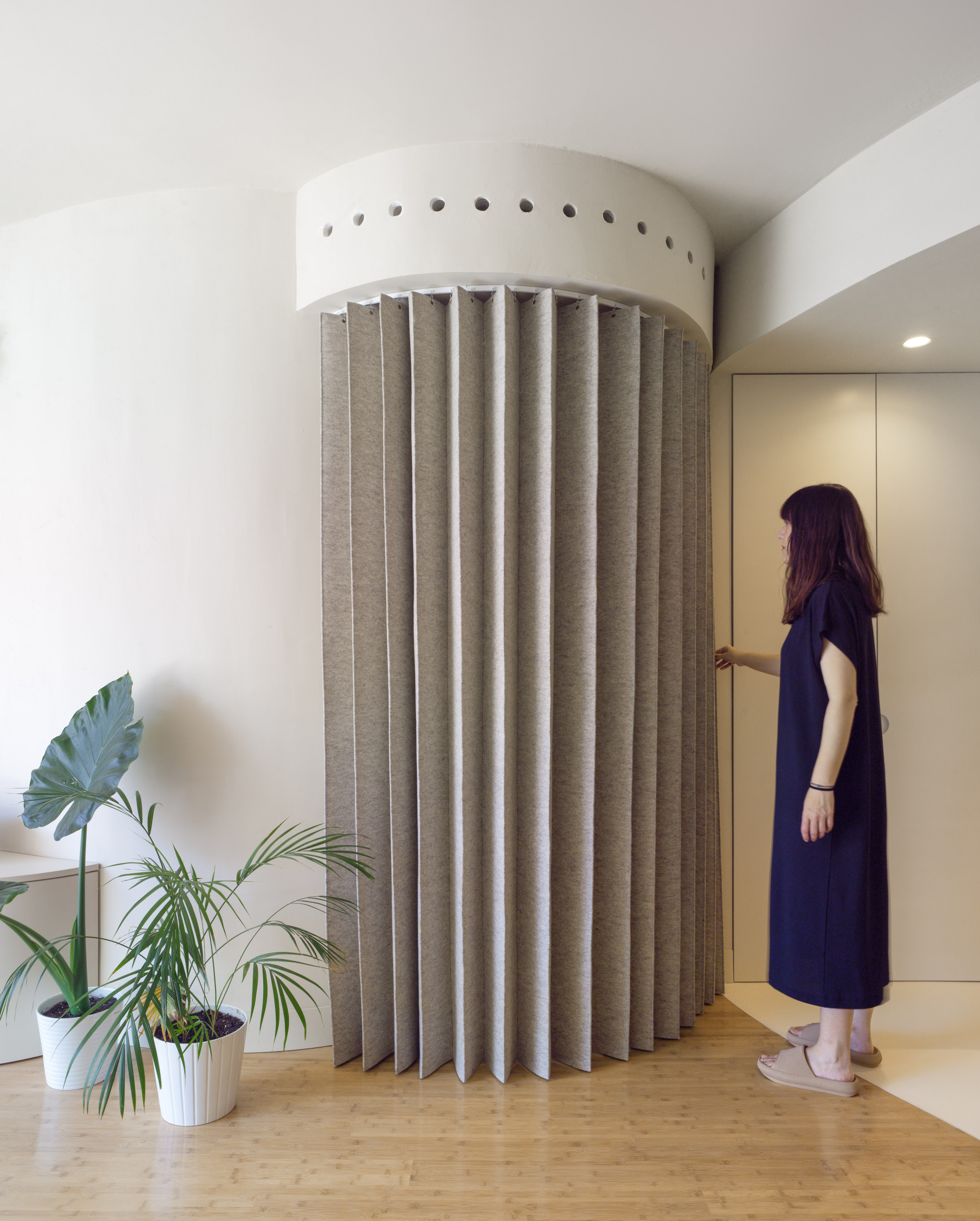 Las cortinas, fabricadas con un fieltro acústico, protegen del ruido.