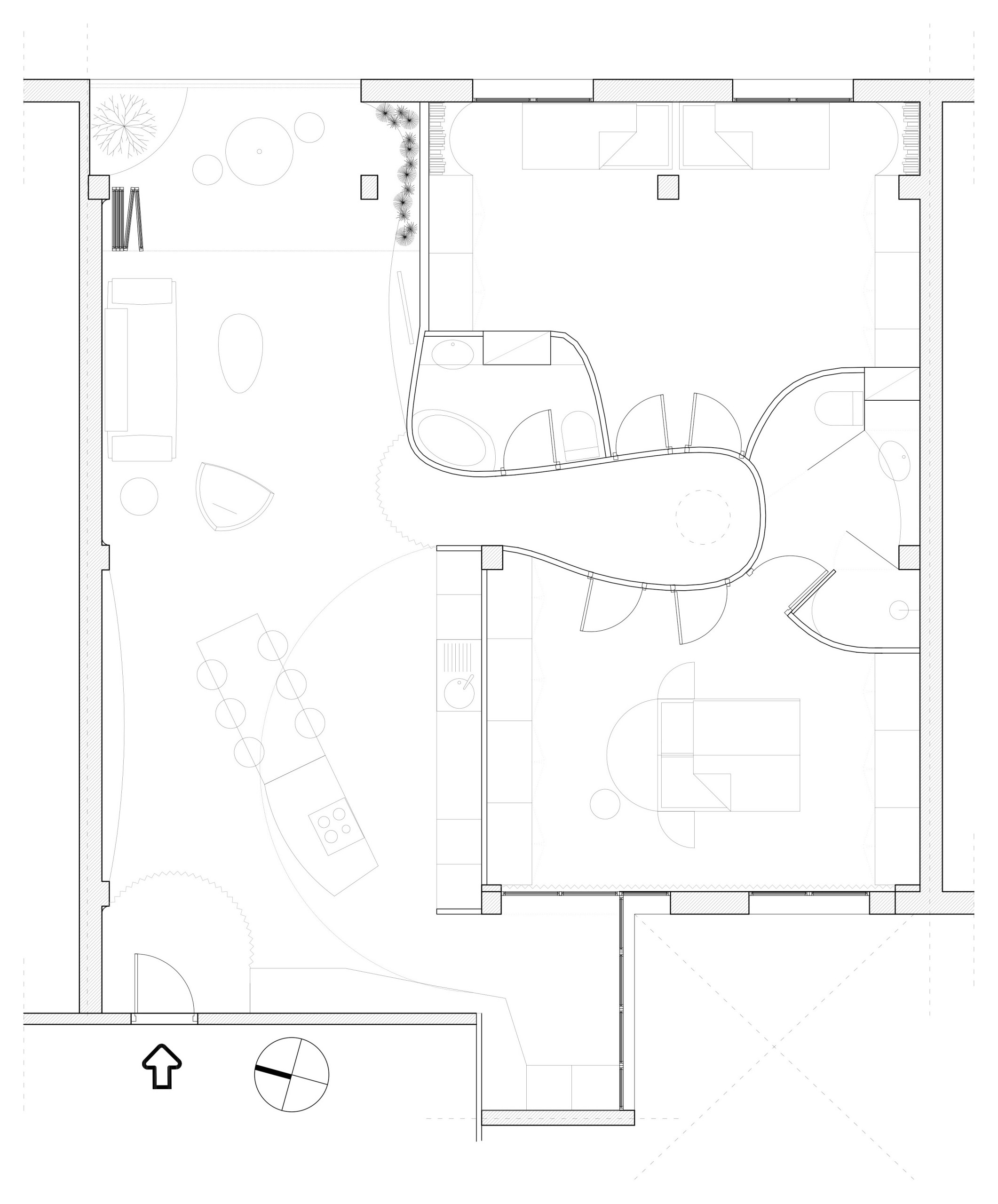 Ortín ha diseñado una nueva distribución con la que ha conseguido fluidez apostando por espacios abiertos y formas curvas. El nuevo diseño favorece un recorrido amable y mejor relación (y más luz) entre los distintos ambientes, como se aprecia en el generoso distribuidor de las habitaciones.