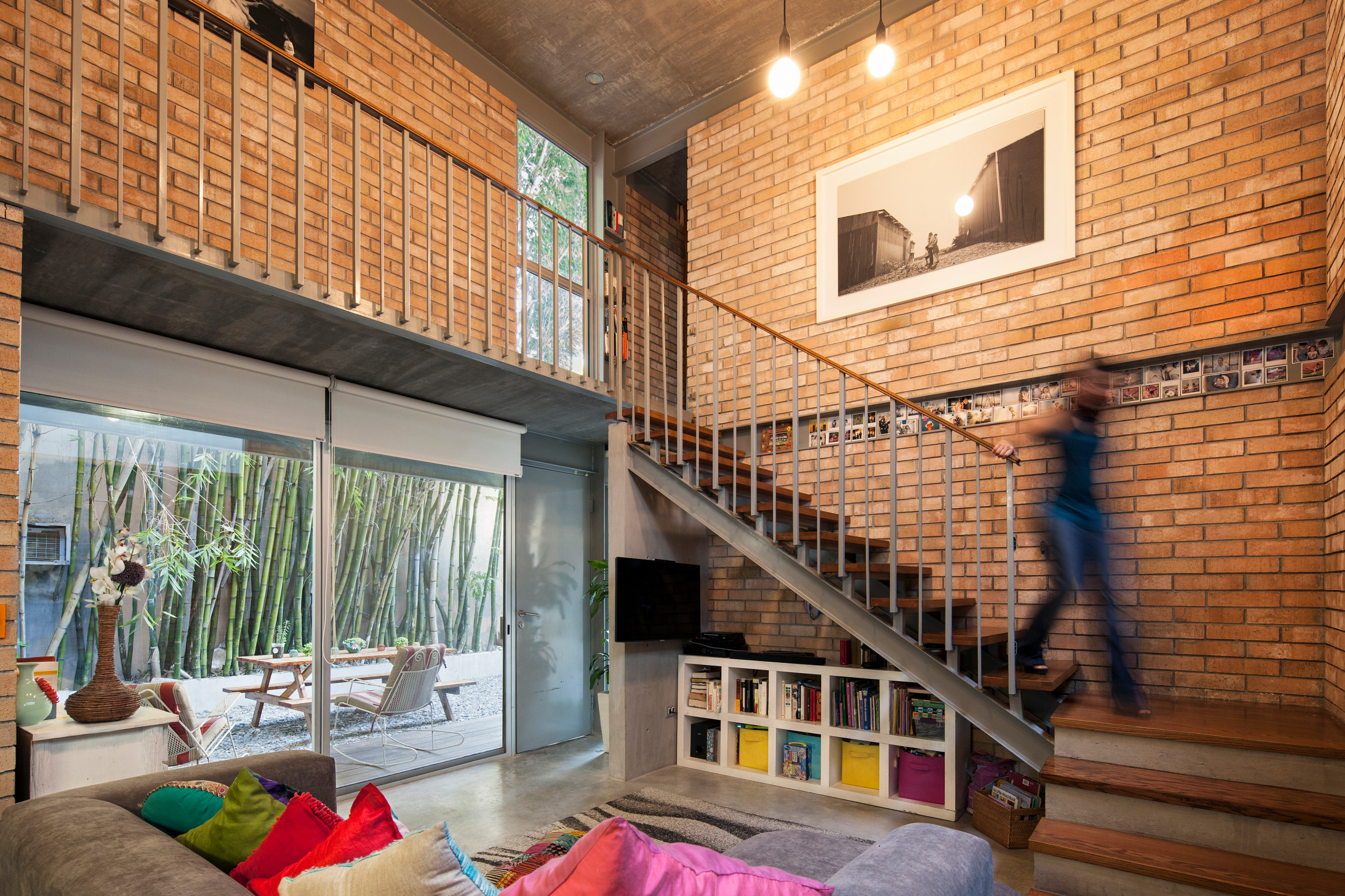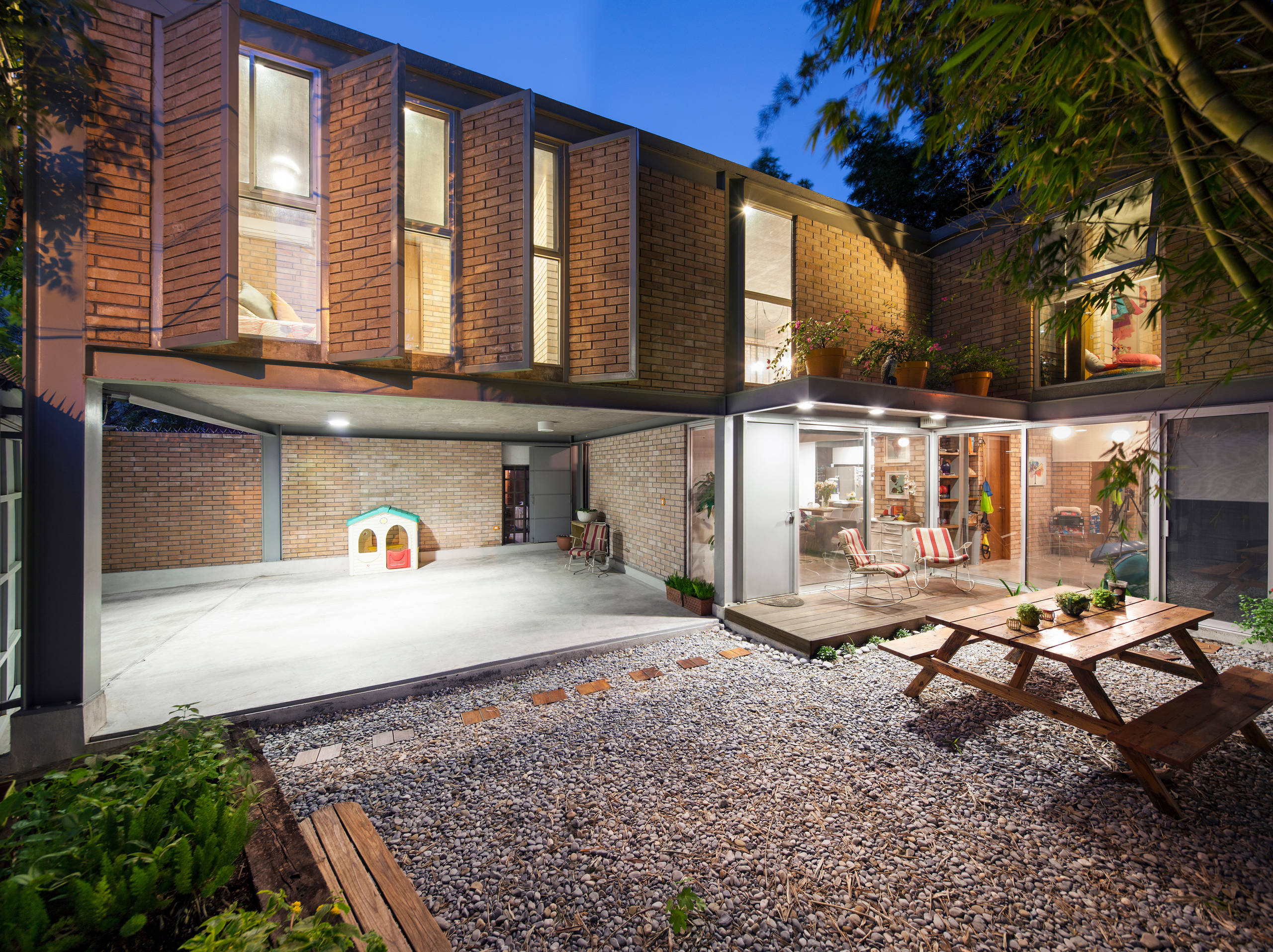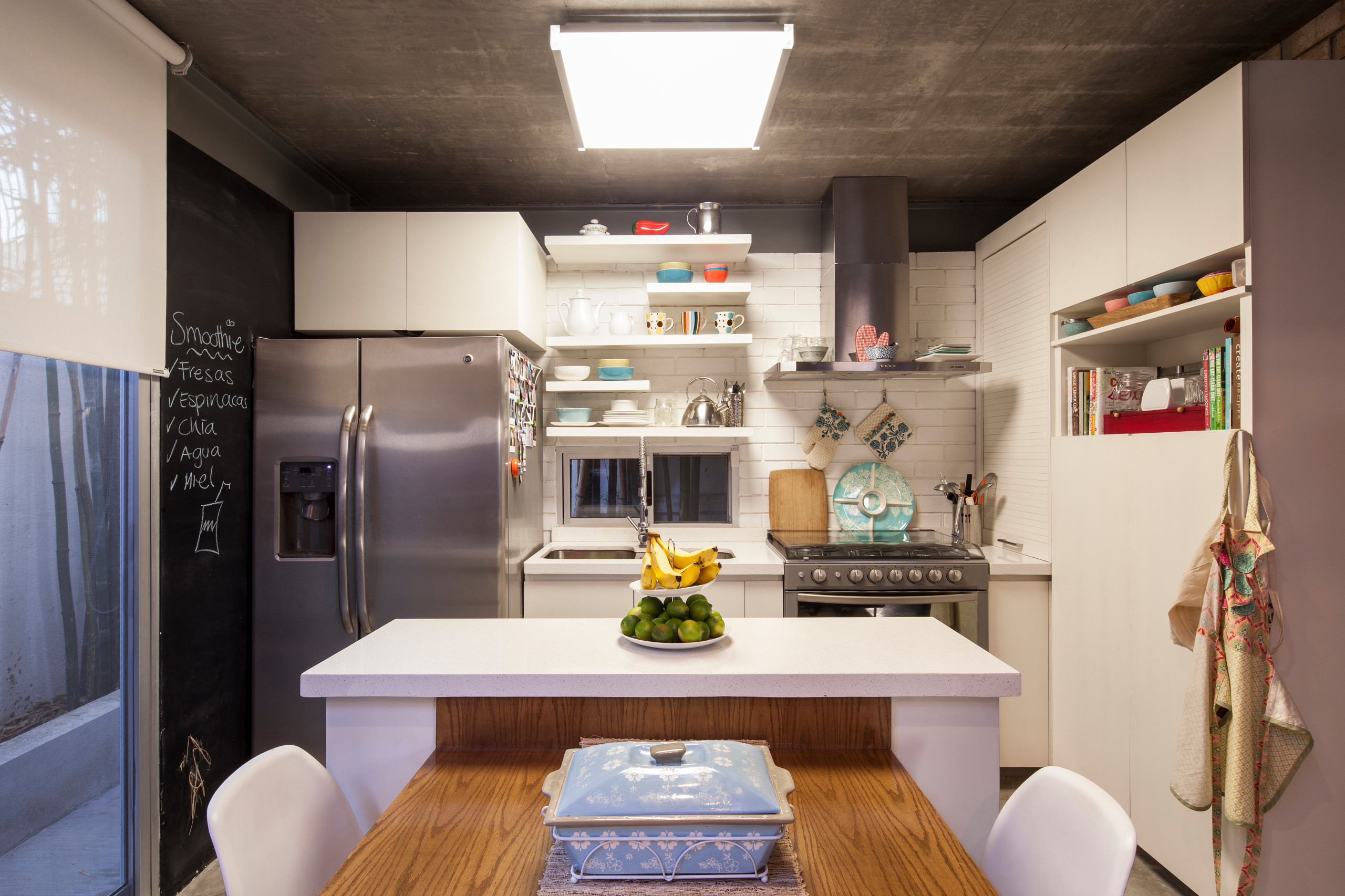 El esquema intencionalmente maximiza la funcionalidad, permitiendo que el matrimonio pueda realizar sus actividades de trabajo y al mismo tiempo, gracias a una distribución de espacios integrados y abiertos, pueda supervisar y convivir con sus hijos. “La casa es utilizada de forma muy flexible, puesto que también imparten talleres de fotografía y pilates en ella en las áreas exteriores”, revela Edna.