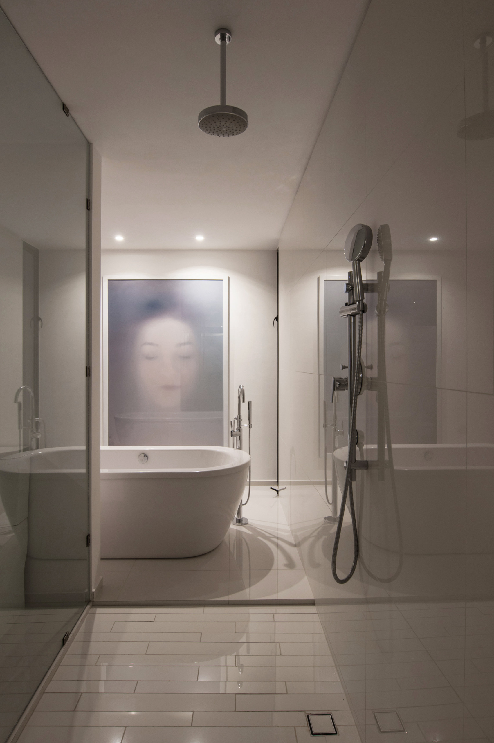 Se trata de una casa con pocos elementos decorativos, pero salpicada de forma puntual por obras de arte. El baño exhibe una pieza de gran formato que remata visualmente la estancia.