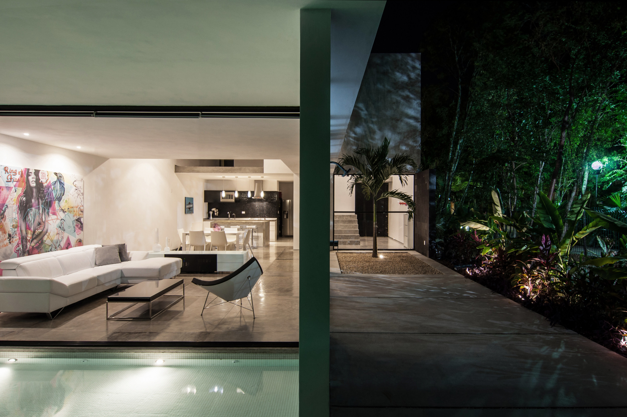 En uno de los epicentros turísticos del Mar Caribe, Cancún, se ubica esta vivienda construida por el estudio Warm Architects para una pareja sin hijos. El objetivo principal, según cuenta el arquitecto Carlos del Castillo, fue “separar el volumen habitable de la fachada que da al Oeste, para aprovechar vistas, sombras y apropiarse del espacio que se genera entre el jardín y el interior de la casa”.
