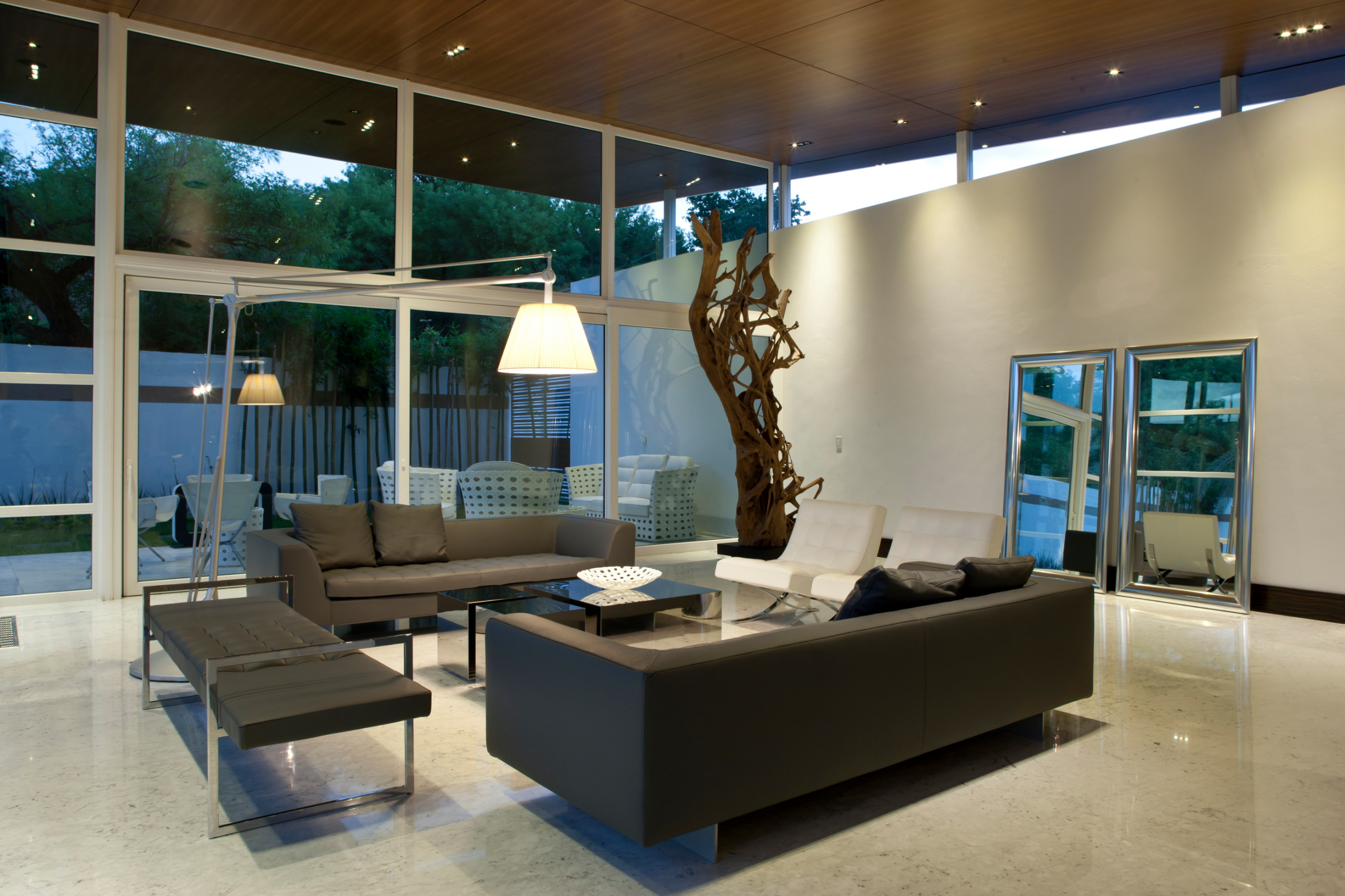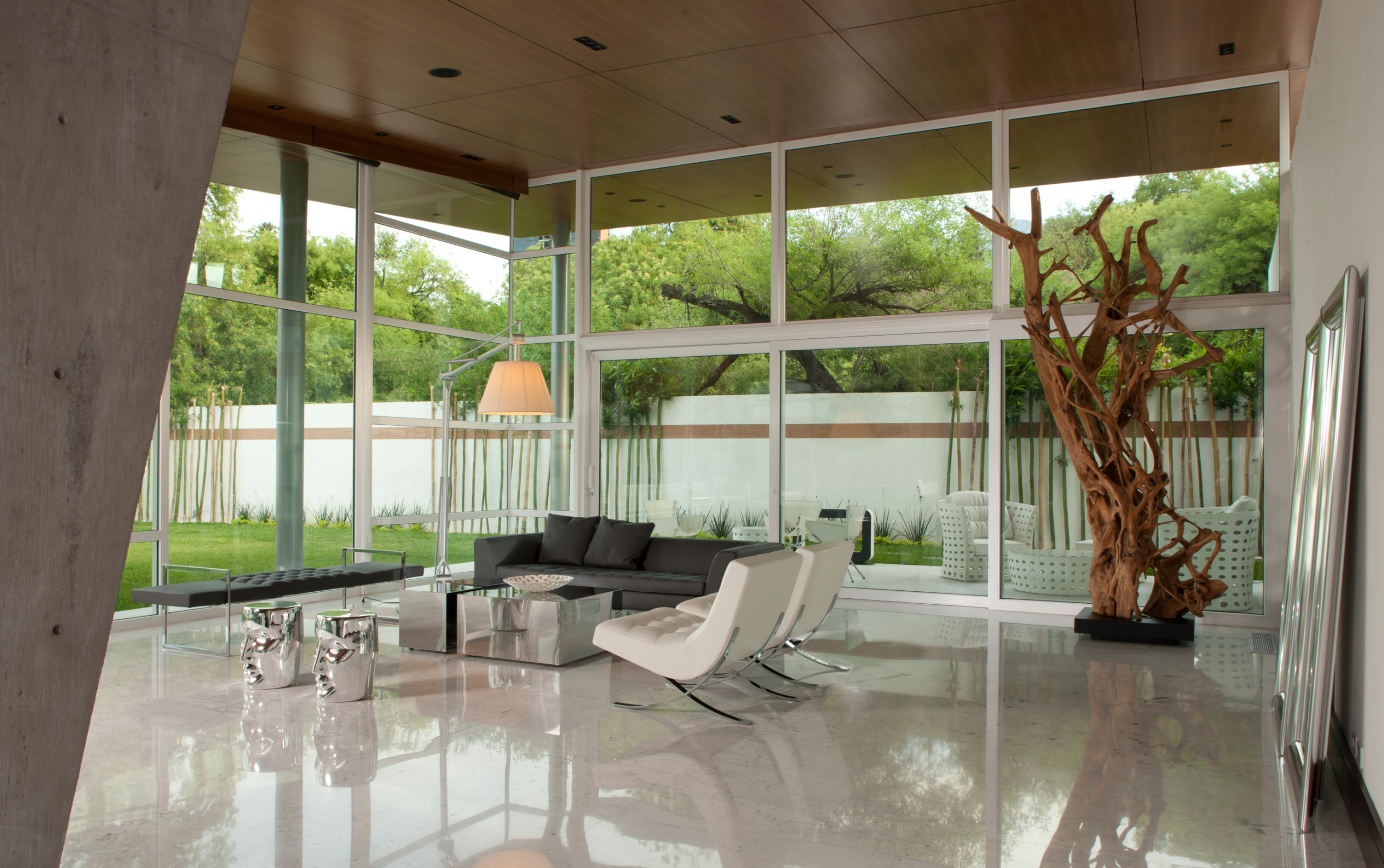 Mármol claro para el suelo, infinitos muros de cristal y un mirador espectacular: una vivienda contemporánea en México abierta a la luz.