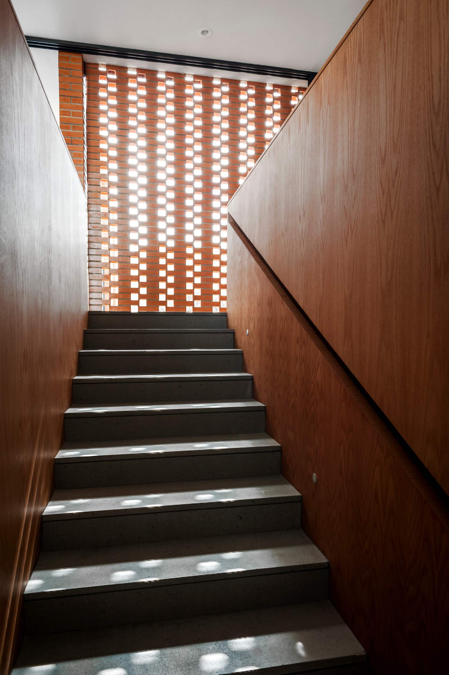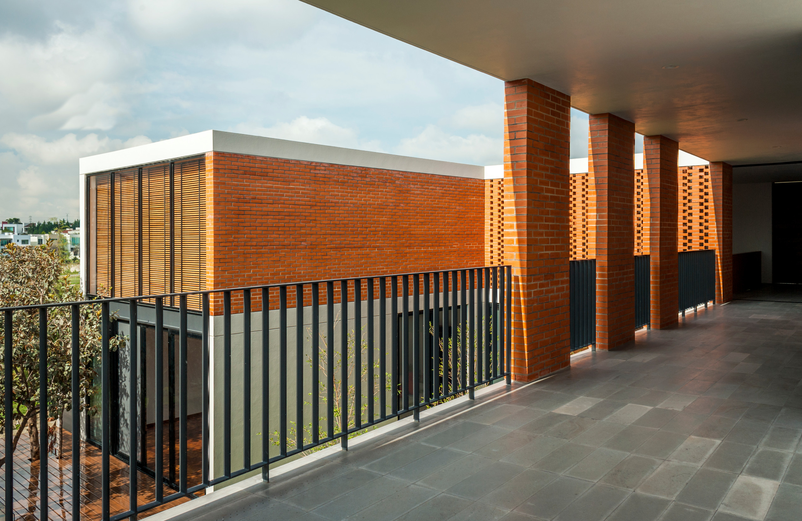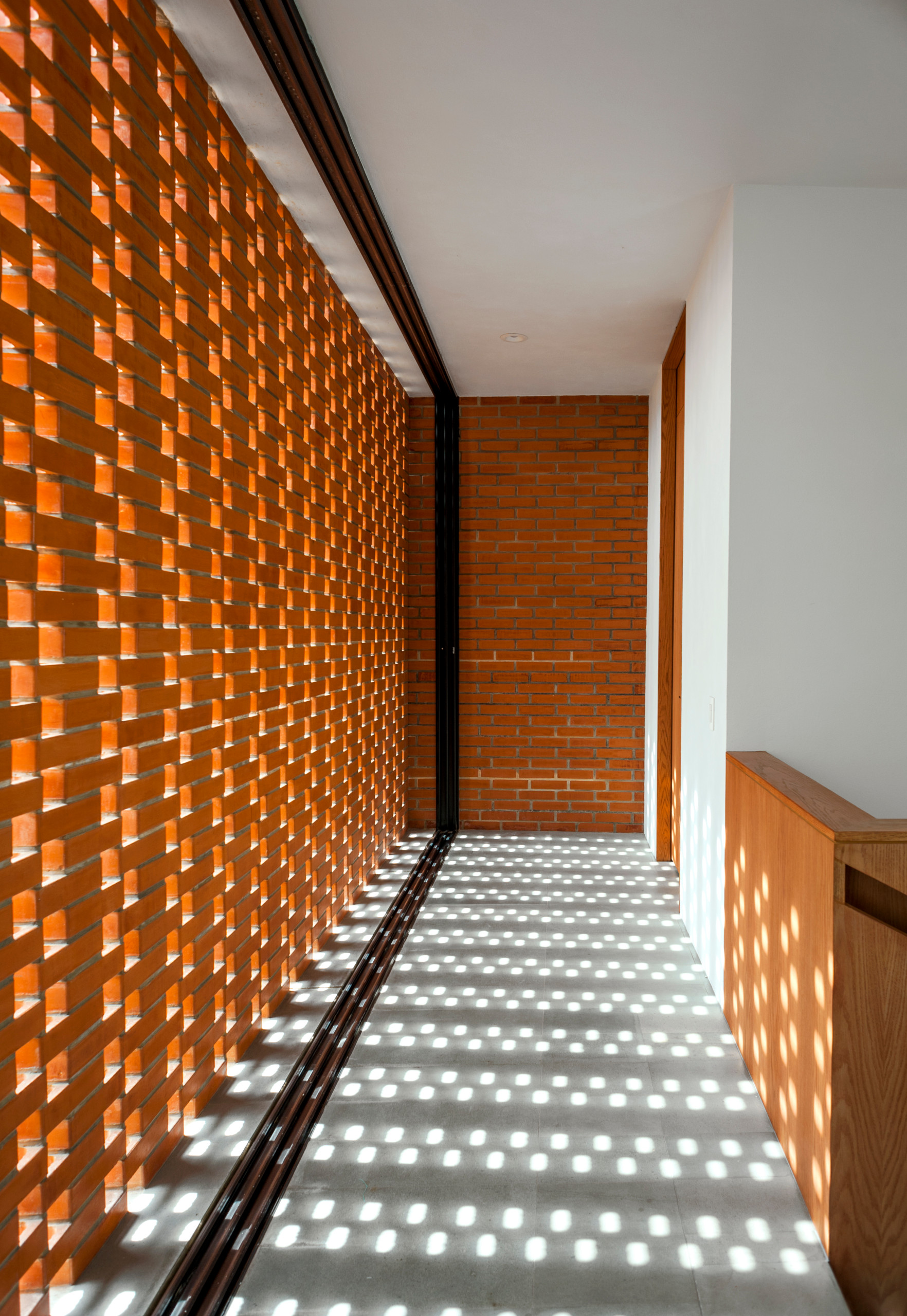 Mediante el uso de ladrillo expuesto se fue definiendo el carácter de todo el espacio interior, creando una clara distinción entre el exterior y el interior. De la misma manera, el uso de celosías genera jardines únicos y juegos de luces y sombras que definen una experiencia que enriquece el recorrido espacial, así como visuales cuidadosamente enmarcadas que generan distintas miradas hacia el exterior. Los detalles técnicos para el uso del ladrillo expuesto y la creación de estas celosías fueron un gran reto, ya que todos los muros son de carga y no hay ningún elemento estructural visible.